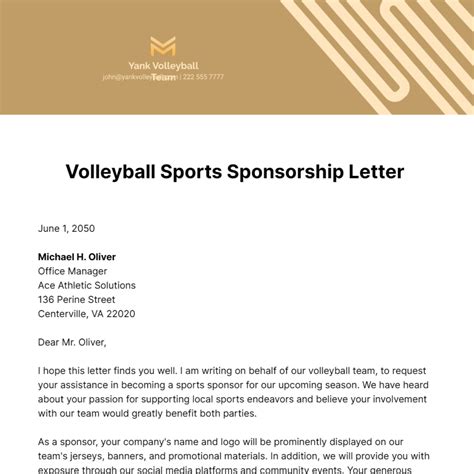 Download SAMPLE VOLLEYBALL SPONSORSHIP LETTER Reader